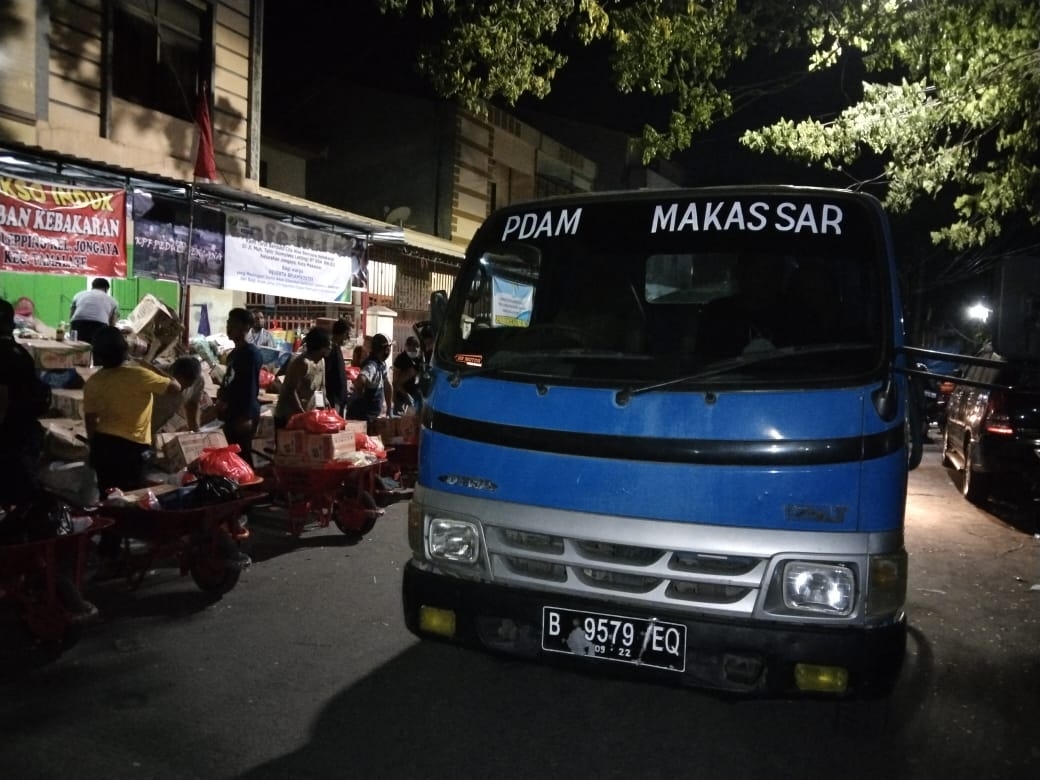 PDAM Makassar Suplai Air Bersih Korban Kebakaran Jongaya MAKASSAR--Perumda Air Minum (PDAM) Kota Makassar ikut membantu korban kebakaran Jongaya dengan mendistribusikan air bersih. Distribusi dilakukan dengan menggunakan mobil tangki. Kepala Bagian Humas PDAM Makassar, Anugrah Alkautzar meng