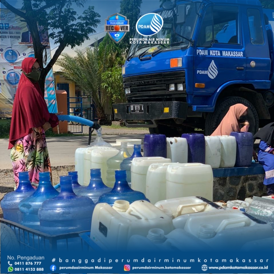 Air Mobil Tangki Gratis Untuk Warga Kelurahan Untia. MAKASSAR, Perumda Air Minum Kota Makassar kembali menurunkan armada mobil tangki untuk pelayanan kebutuhan air bersih bagi masyarakat. Senin, 21 Juni diturunkan sebanyak 7 unit armada mobil tangki untuk distribusikan air ke warga kelurahan Untia