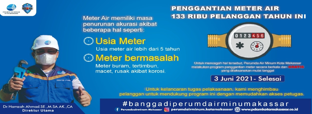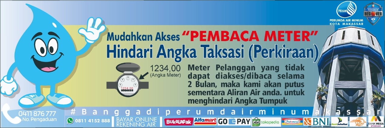 MAKASSAR--Perusahaan Umum Daerah Air Minum (PDAM) Makassar terus memberi pelayanan maksimal kepada pelanggannya. Salah satunya dengan mengganti meter air yang sudah berusia tua dengan meter air baru. Penggantian meter air ini akan dilakukan secara serentak di empat wilayah pelayanan PDAM Makassar.